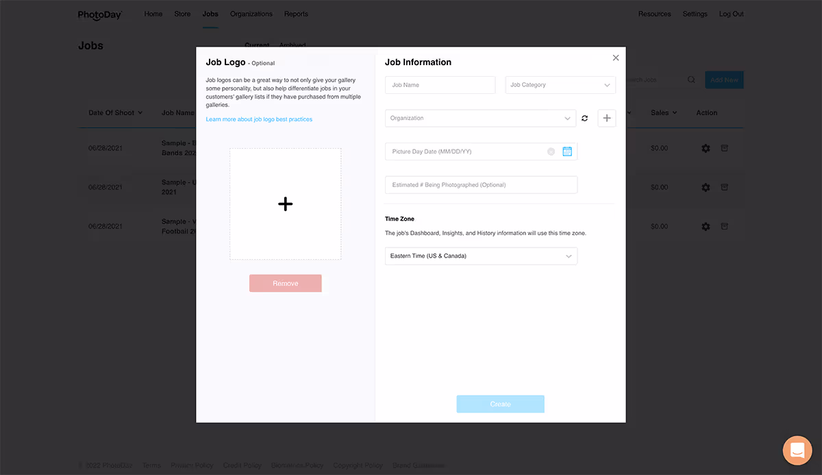 With your studio information added, a price sheet created, and at least one organization added to your studio panel, you can begin creating and promoting your jobs. A “job” within PhotoDay is any picture day shoot, its associated information, the photos it will eventually include, and any promotional flyers created for that specific job.