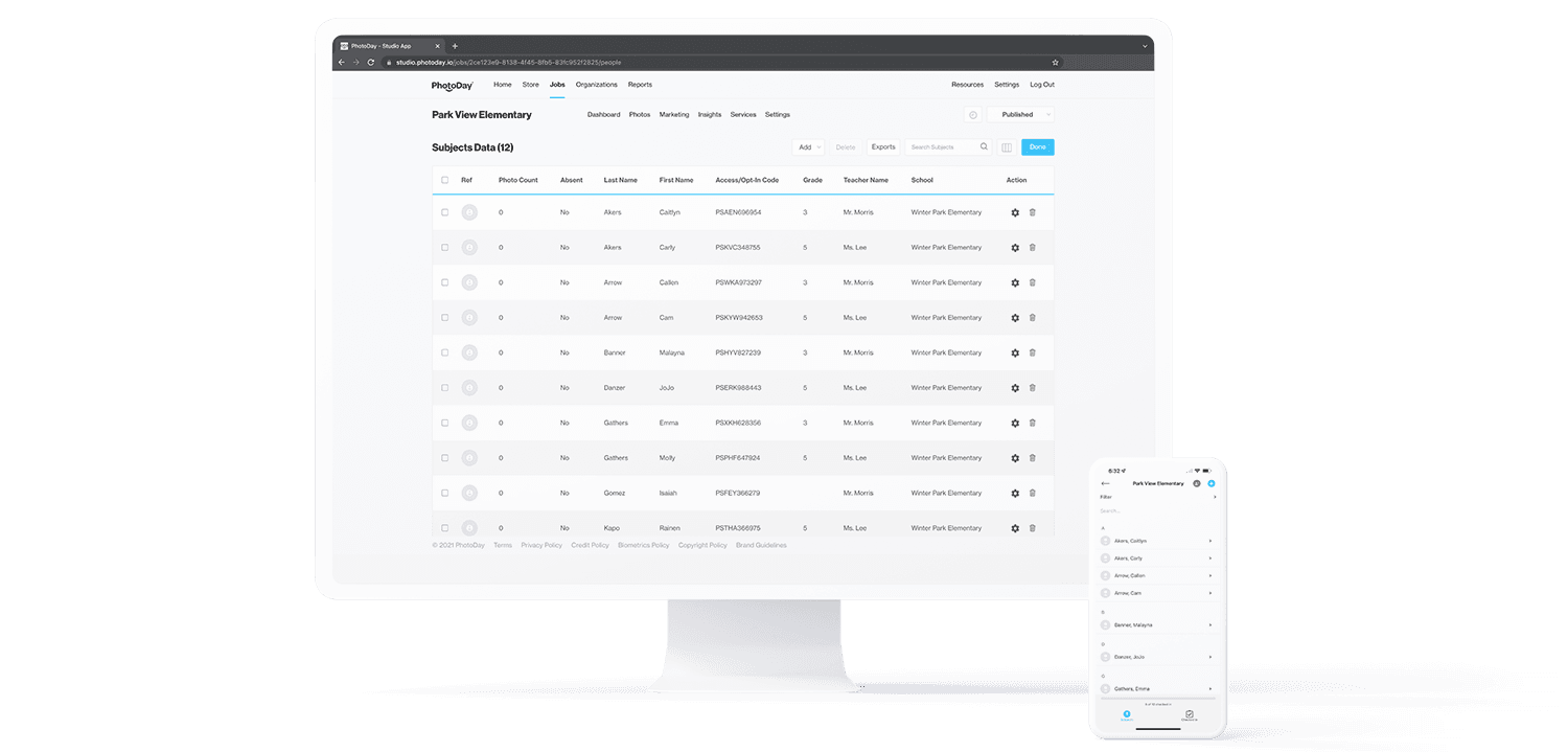 This is where FaceFind works its magic ✨ Capture syncs the reference photos and data to PhotoDay, so all you have to do is upload your professional photos and watch FaceFind match the right face to the right data. FaceFind is wildly accurate—we've tested it on individuals, buddy poses, group photos, profile views, sunglasses, face masks...it can even differentiate between twins!