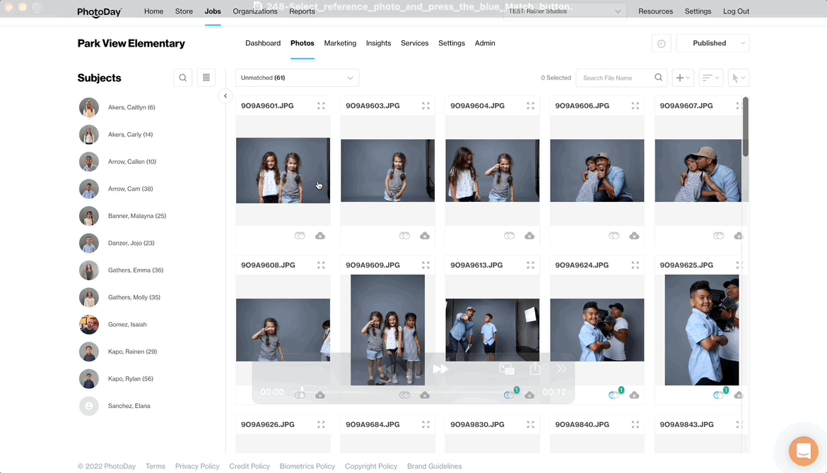 When it comes to uploading your professional images to a private gallery job, FaceFind (PhotoDay's facial recognition technology) does a great job automatically matching them to the reference photos taken with PhotoDay Capture and included in your subject data.
