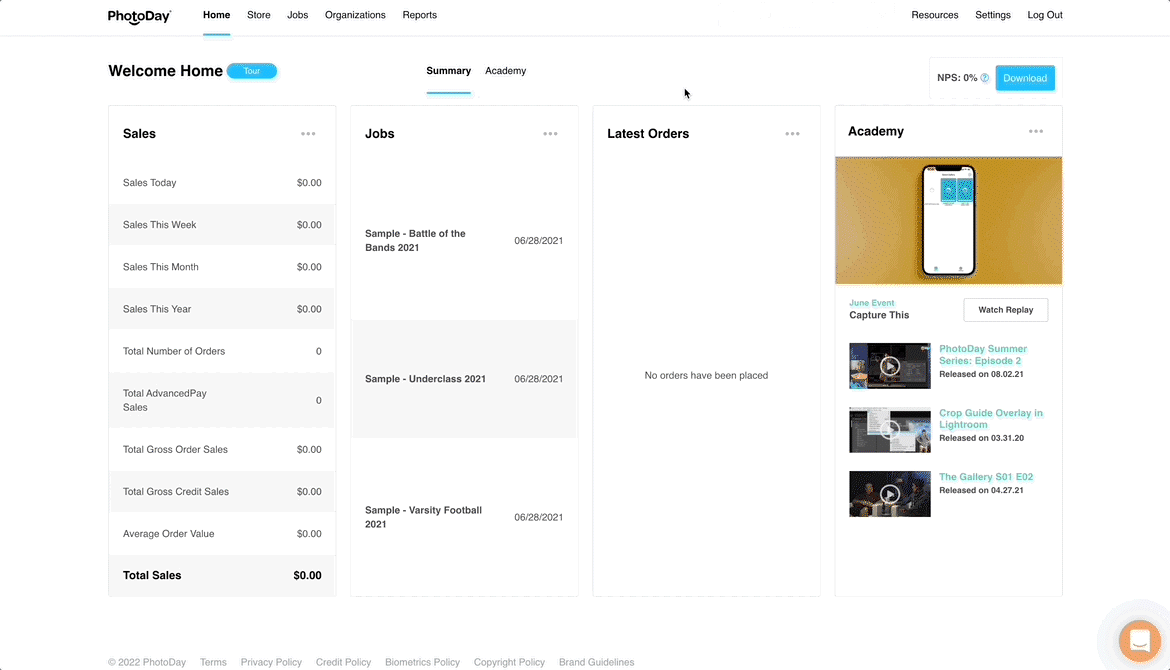 With your studio information added, a price sheet created, and at least one organization added to your studio panel, you can begin creating and promoting your jobs. A “job” within PhotoDay is any picture day shoot, its associated information, the photos it will eventually include, and any promotional flyers created for that specific job.