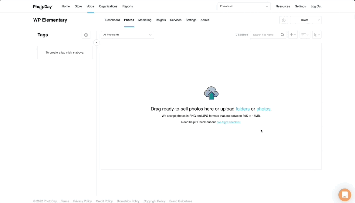 You can structure your gallery’s tags before uploading by organizing your photos into segmented folders on your computer. Then when you upload them to PhotoDay, each folder containing photos will automatically become tags.