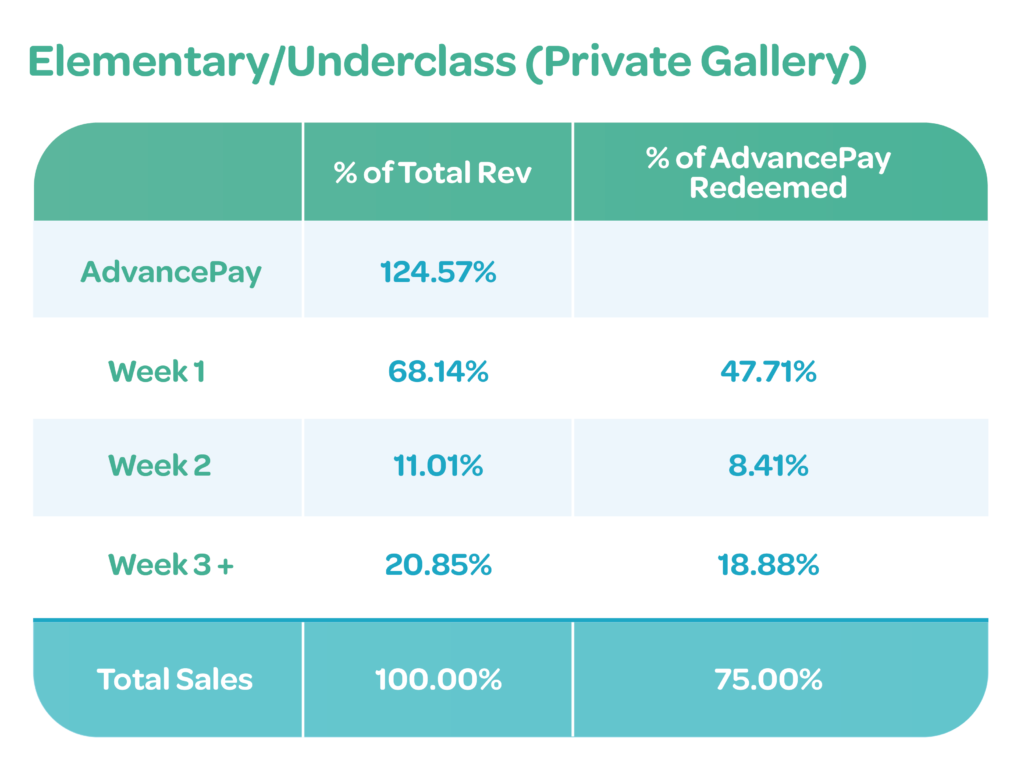 Buyer Qualification: AdvancePay is the only way to qualify your potential buyers. Customers who purchase an AdvancePay gift card have committed to purchasing photos when they are ready to view.