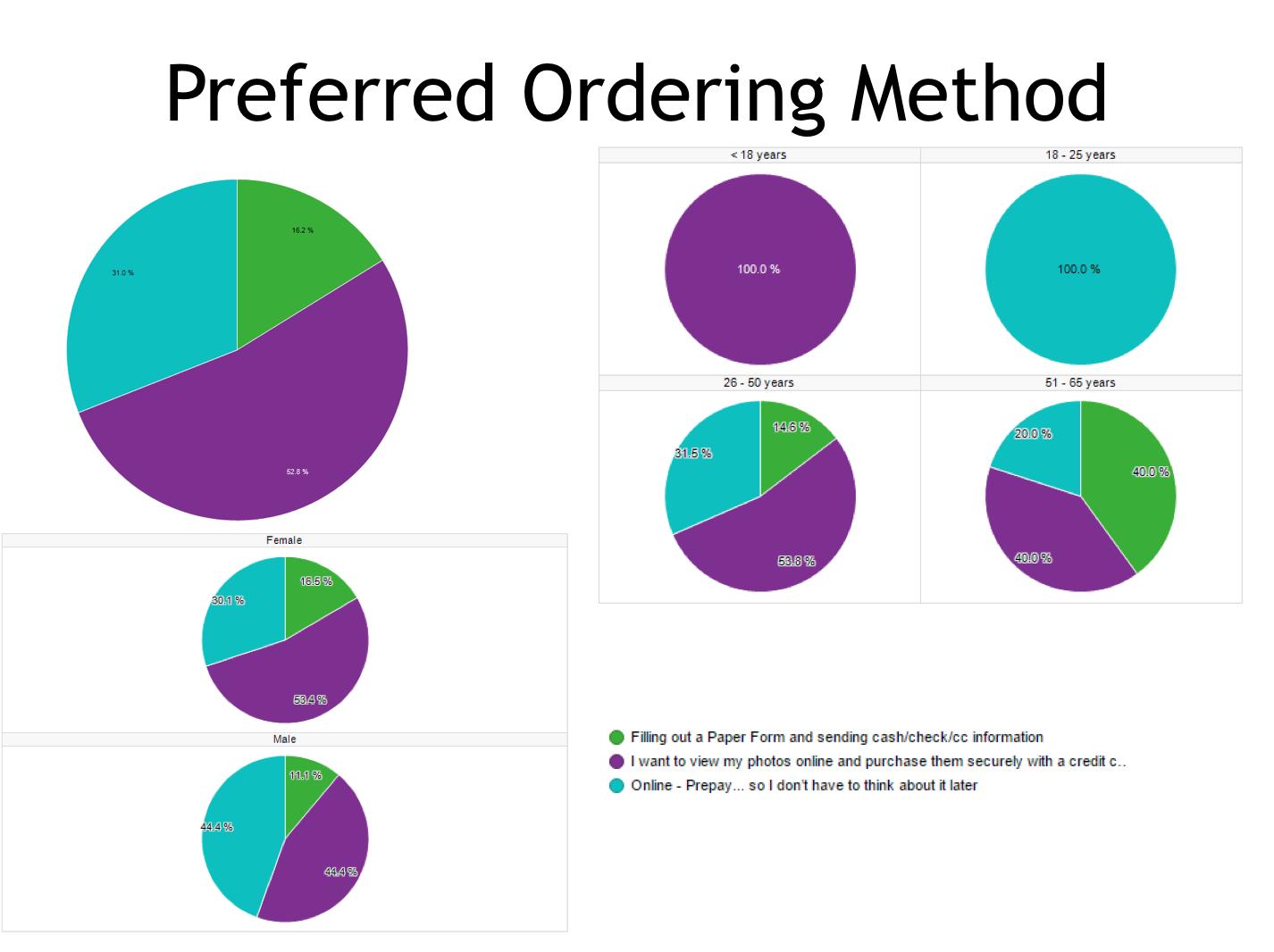 - Only 16% of parents said they wanted to pay by cash or check via paper form. Maybe they didn’t know they could order online? Everyone else would like to order online in advance, or online after they see their photos.